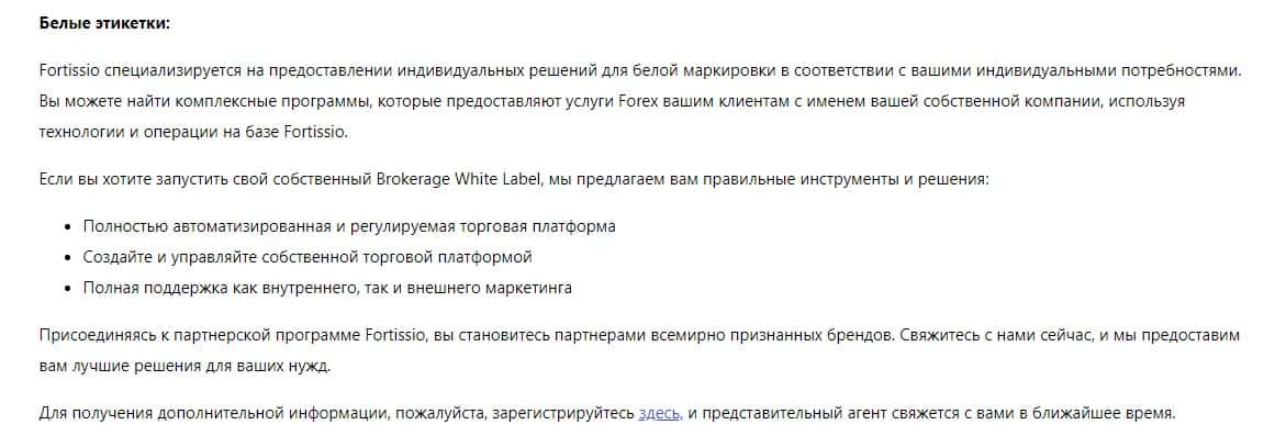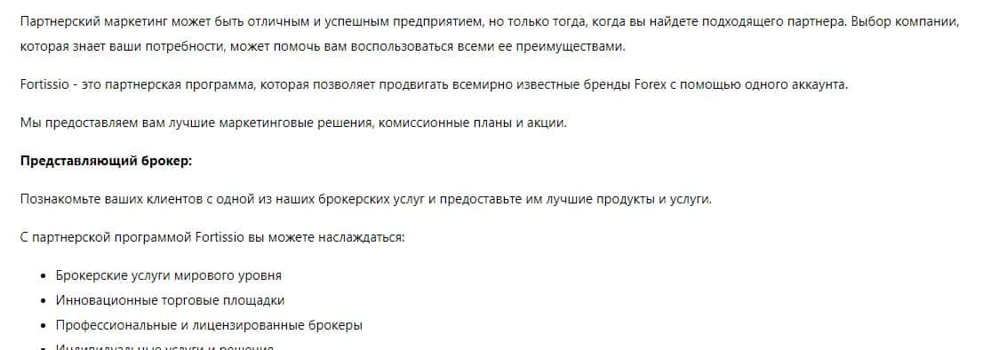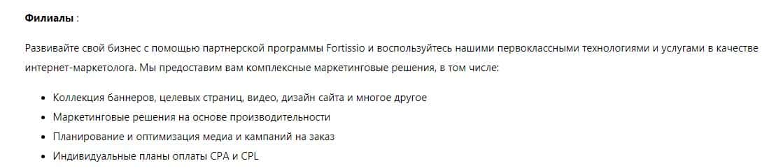 Лживый раздел аферистов Fortissio об их партнерской программе