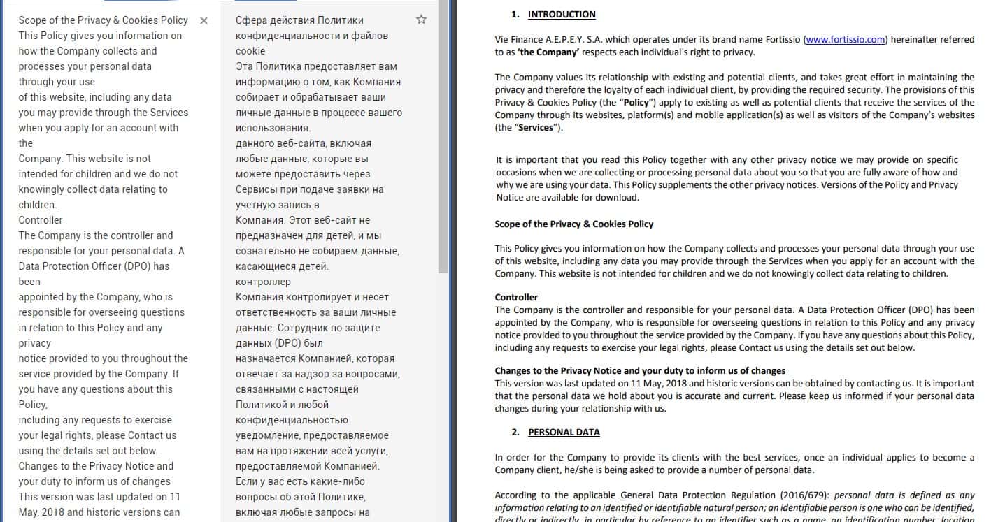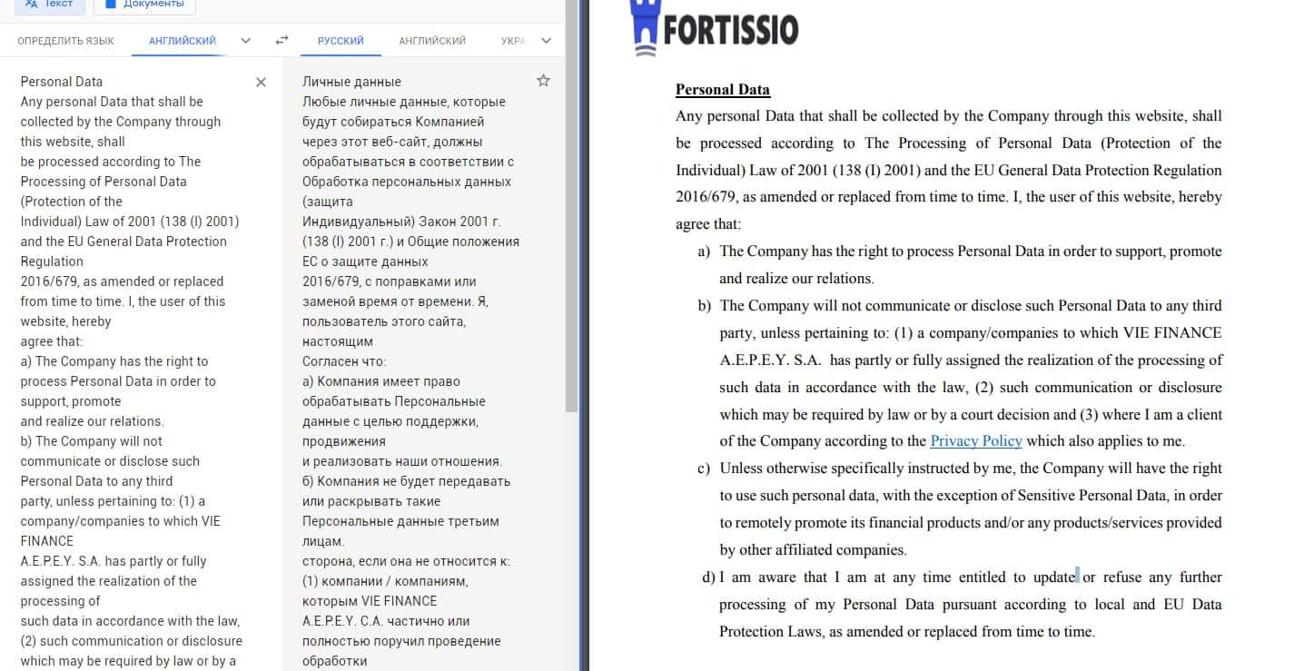 - Красиво написанные условия политики конфиденциальности жуликов Фортиссио