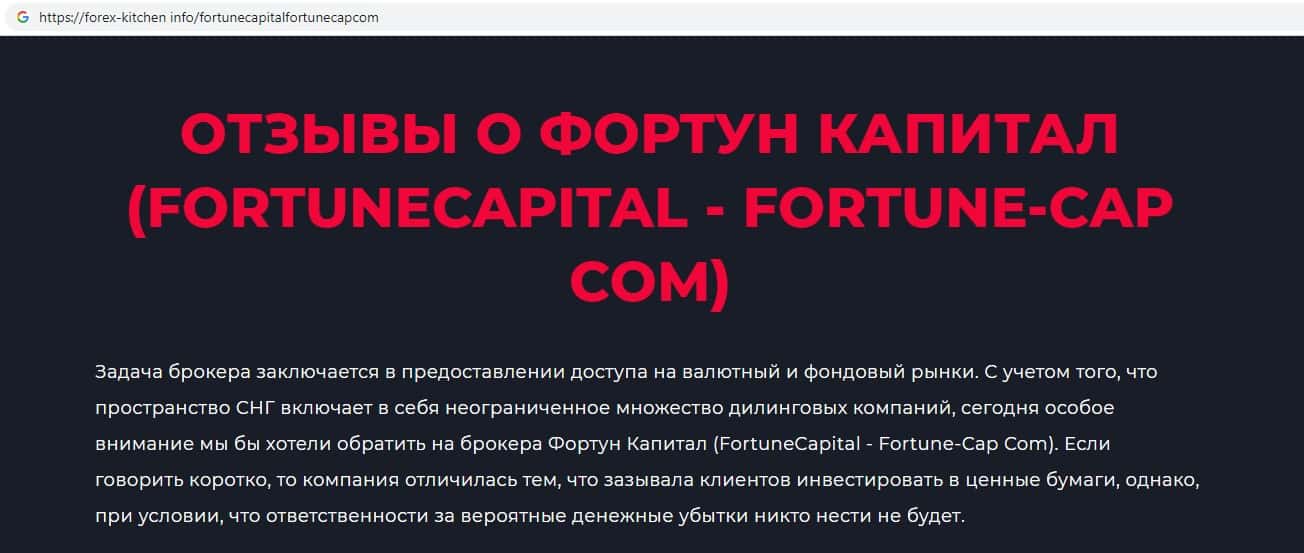 Fortune Capital - обзоры скам-конторы на других онлайн-ресурсах