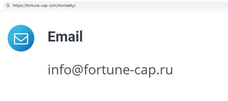 Шулера FortuneCapital на своем официальном интернет-ресурсе указывают адрес электронной почты, а именно:
