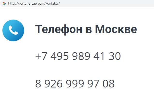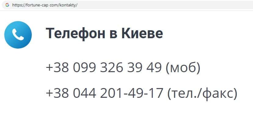 Также аферисты Фортун Капитал указывают номера контактных телефонов для осуществления звонков пользователей, которые проживают на территории Украины:
