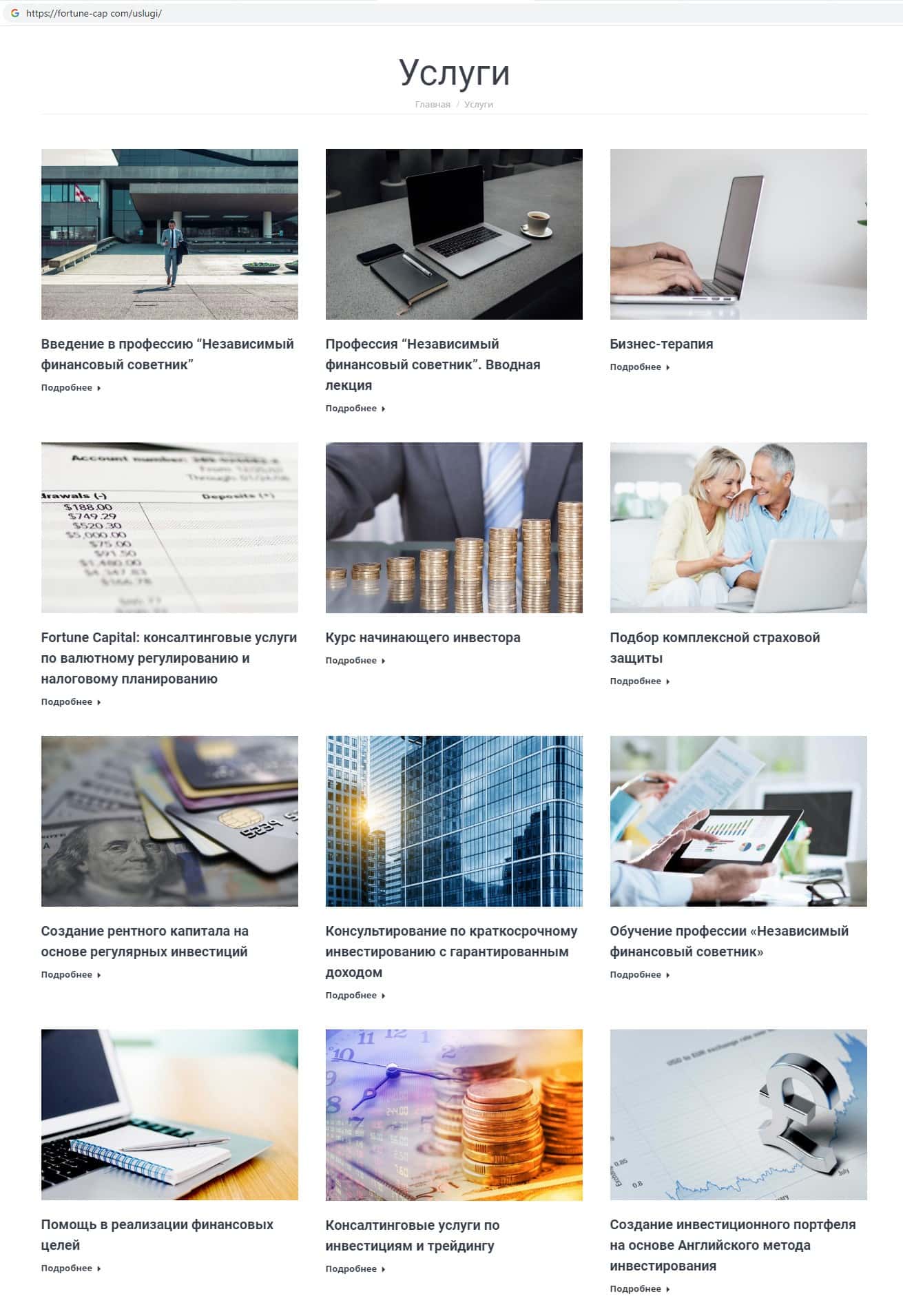 Виды предлагаемых услуг на онлайн-сервисе шараги FortuneCapital
