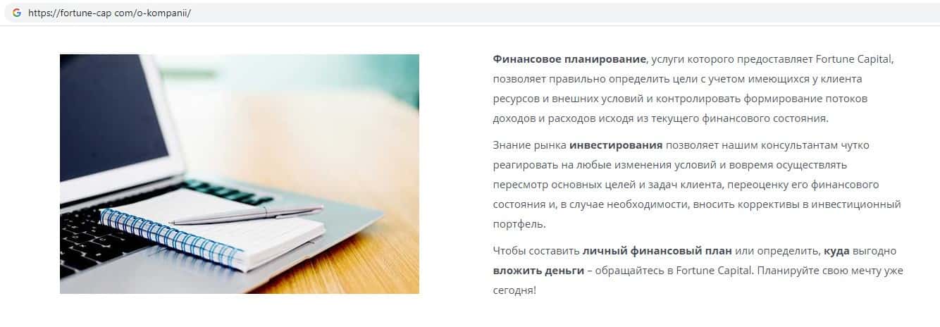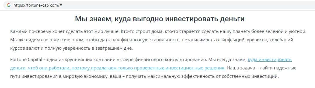 - Обзор главной страницы жульнической конторы Фортун Капитал
