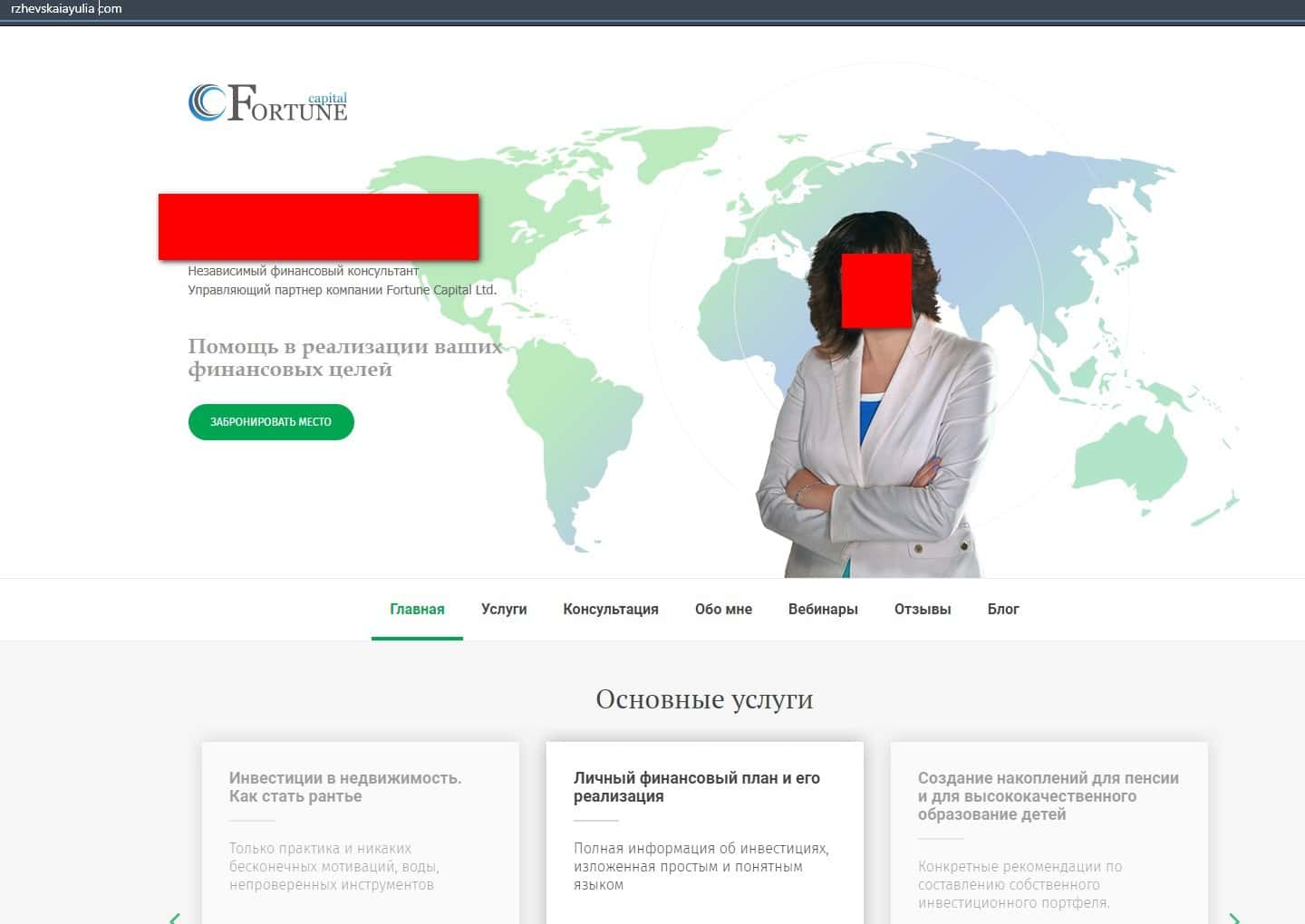 Далее представлен один из интернет-сайтов, который связан с лохотроном Фортун Капитал. На самом деле их консультант оформился под ИП и ведет параллельную деятельность.
