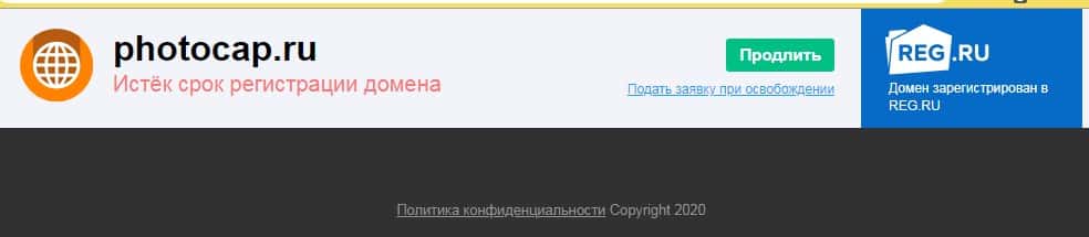 При попытке перейти на официальный сайт мошенников PhotoCap Ru наша попытка не увенчалась успехом, так как шулера Фото Мания нагло слились после волны многочисленных разводов своих пользователей на деньги. Как выглядит страница, которая отрывается при поиске официального сайта вы можете увидеть на изображении ниже.