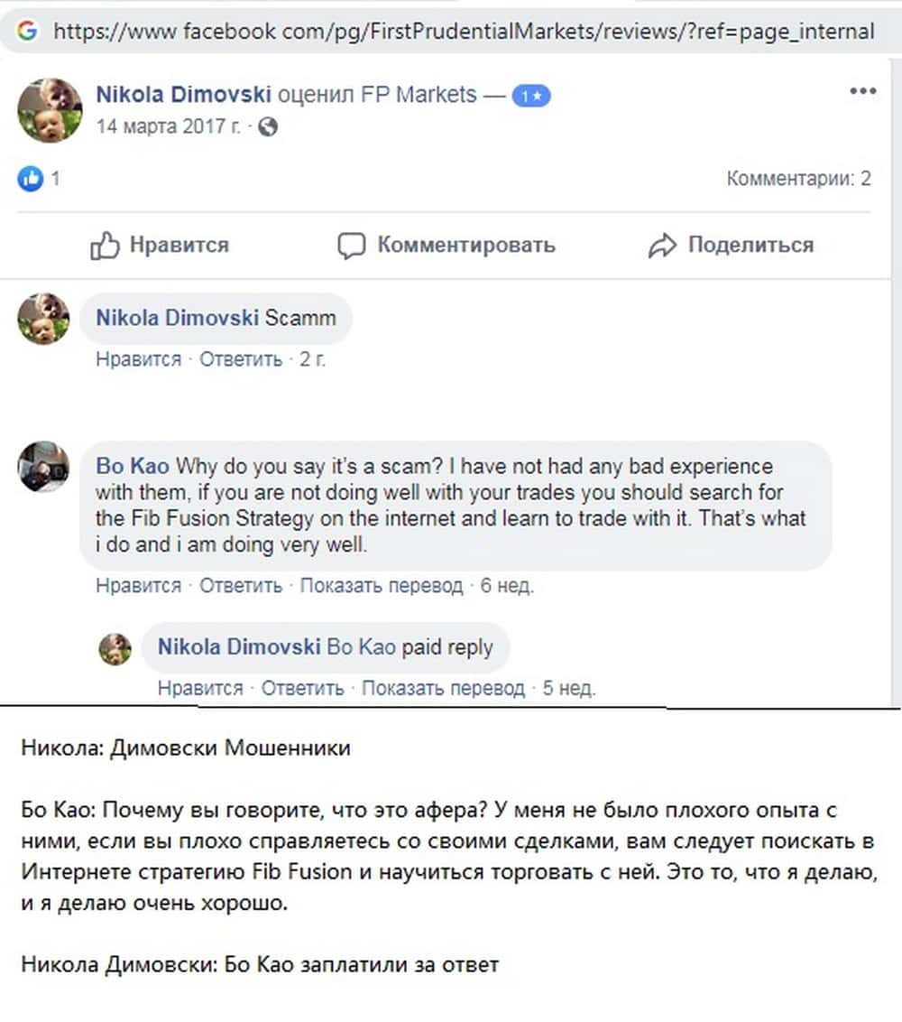 - Отрицательный комментарий о конторе ФП Маркетс в Фейсбук