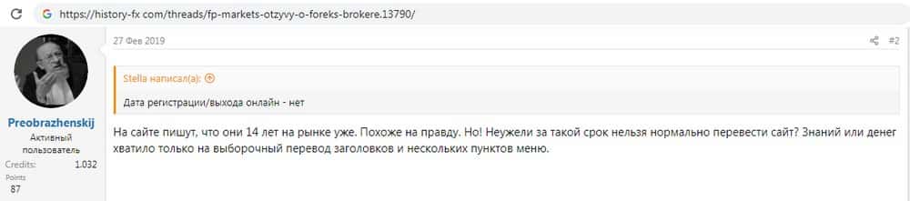 Фальшивый брокер ФП Маркетс вызывает сомнения пользователей