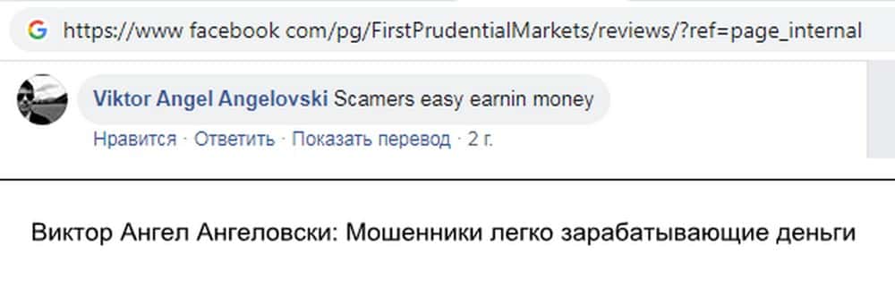 Отрицательный комментарий о конторе ФП Маркетс в Фейсбук