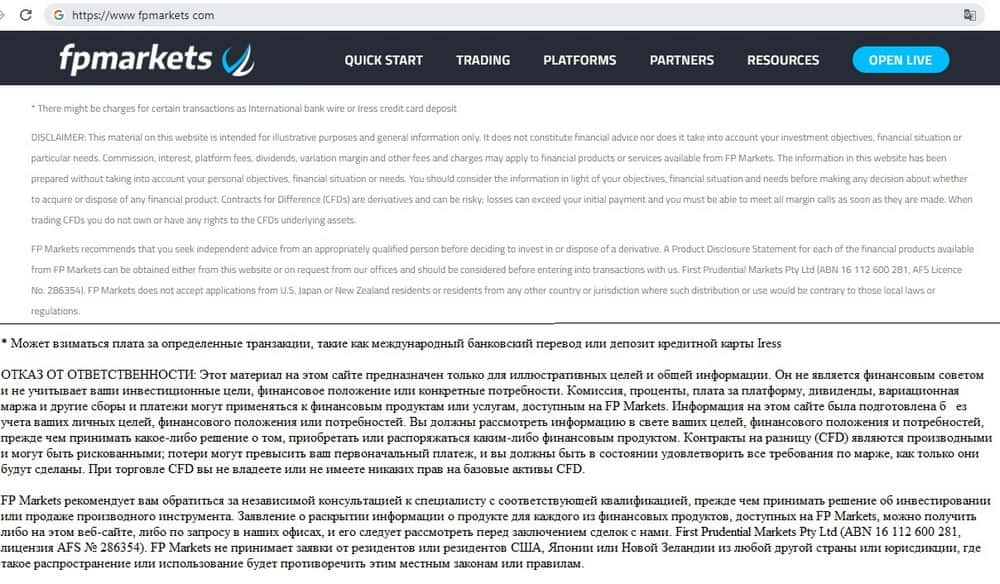 Лицензия австралийского регулятора, которой так хвастаются мошенники FP Markets, распространяется только на жителей Австралии. Граждане всех остальных государств не подпадают под действие данного разрешения, то есть в случае их кидалова ответ жулики не понесут.