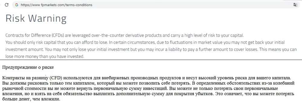 Начинается клиентское соглашение, которое размещено на портале ФП Маркетс, очень многообещающе: лохотронщики не просто извещают наивного вкладчика, что он рискует своими финансами. Аферисты предупреждают, что потерять их клиент может даже больше, чем вложил изначально.