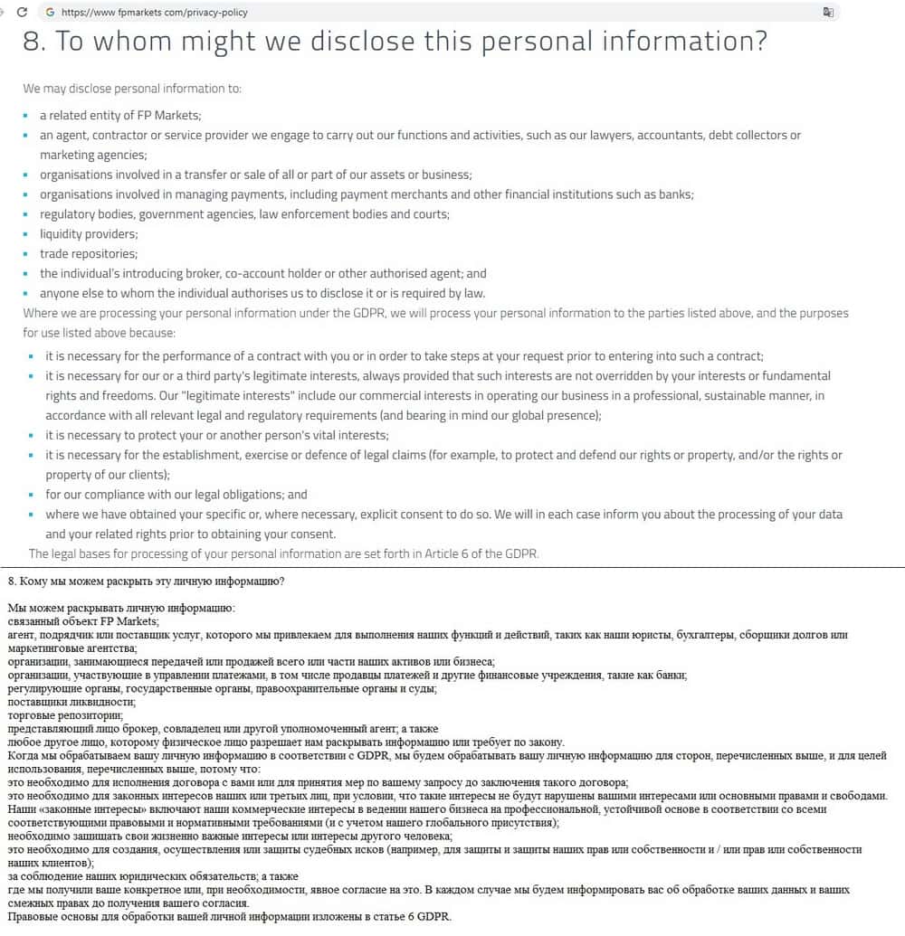 - Подробности политики конфиденциальности лживого брокера ФП Маркетс