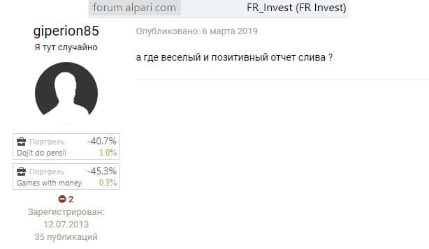 - Подробный отзыв об облапошивании честных людей в FR Invest
