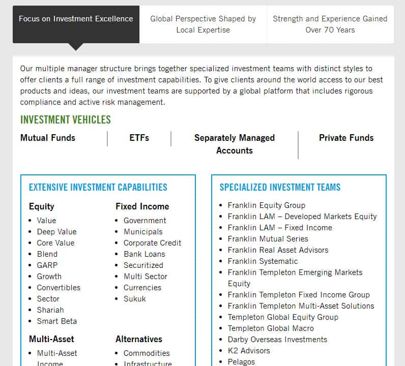 После на подвальном сайте аферистов Франклин Темплетон следует довольно типичный и банальный раздел с довольно сомнительными услугами мошенников Franklin Templeton, под предлогом которых они пытаются навязать свою контору. На изображении, расположенном ниже, вы можете увидеть данный раздел сайта жуликов Франклин Темплетон.