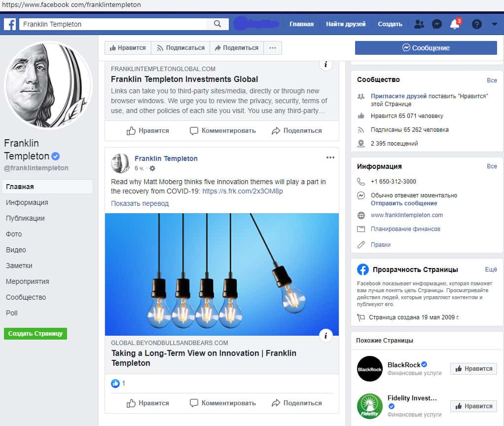 Страницы лохотрона Франклин Темплетон в социальных сетях
