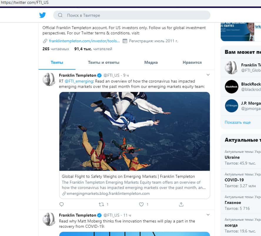 - Страницы лохотрона Франклин Темплетон в социальных сетях