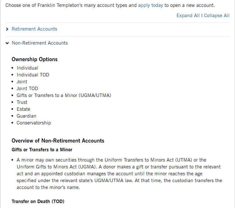 Дабы вытягивать средства со всех слоев населения было проще жулики Франклин Темплетон добавили систему аккаунтов, по которой пытаются содрать максимальное количество средств под предлогом "особых" преимуществ обслуживания и аналогичных маркетинговых ходов. Информацию об аккаунтах лохотрона можно увидеть ниже.