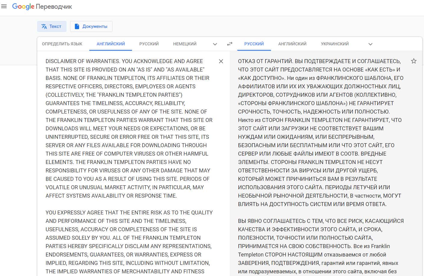 После в условиях сотрудничества у лохотрона Franklin Templeton расположен банальный отказ от ответственности за свои услуги, а так же информацию, которая расположена на подвальном сайте проходимцев Франклин Темплетон. На изображении, расположенном ниже, вы можете наглядно увидеть данный отказ мошенников Franklin Templeton.