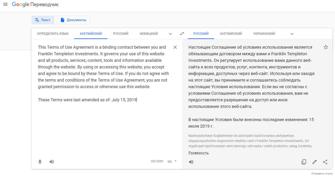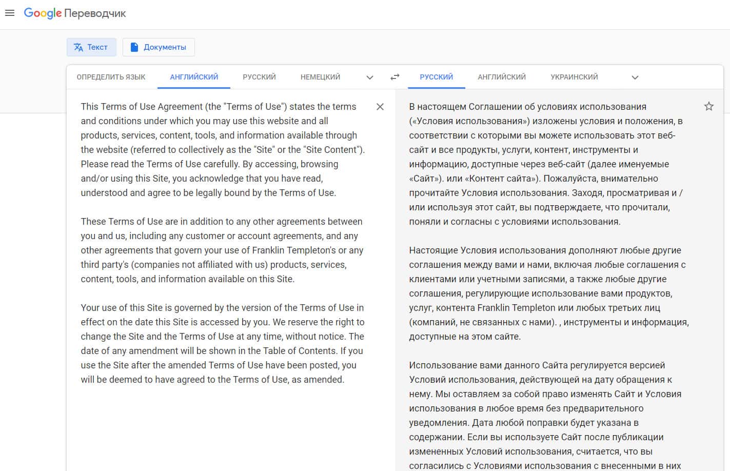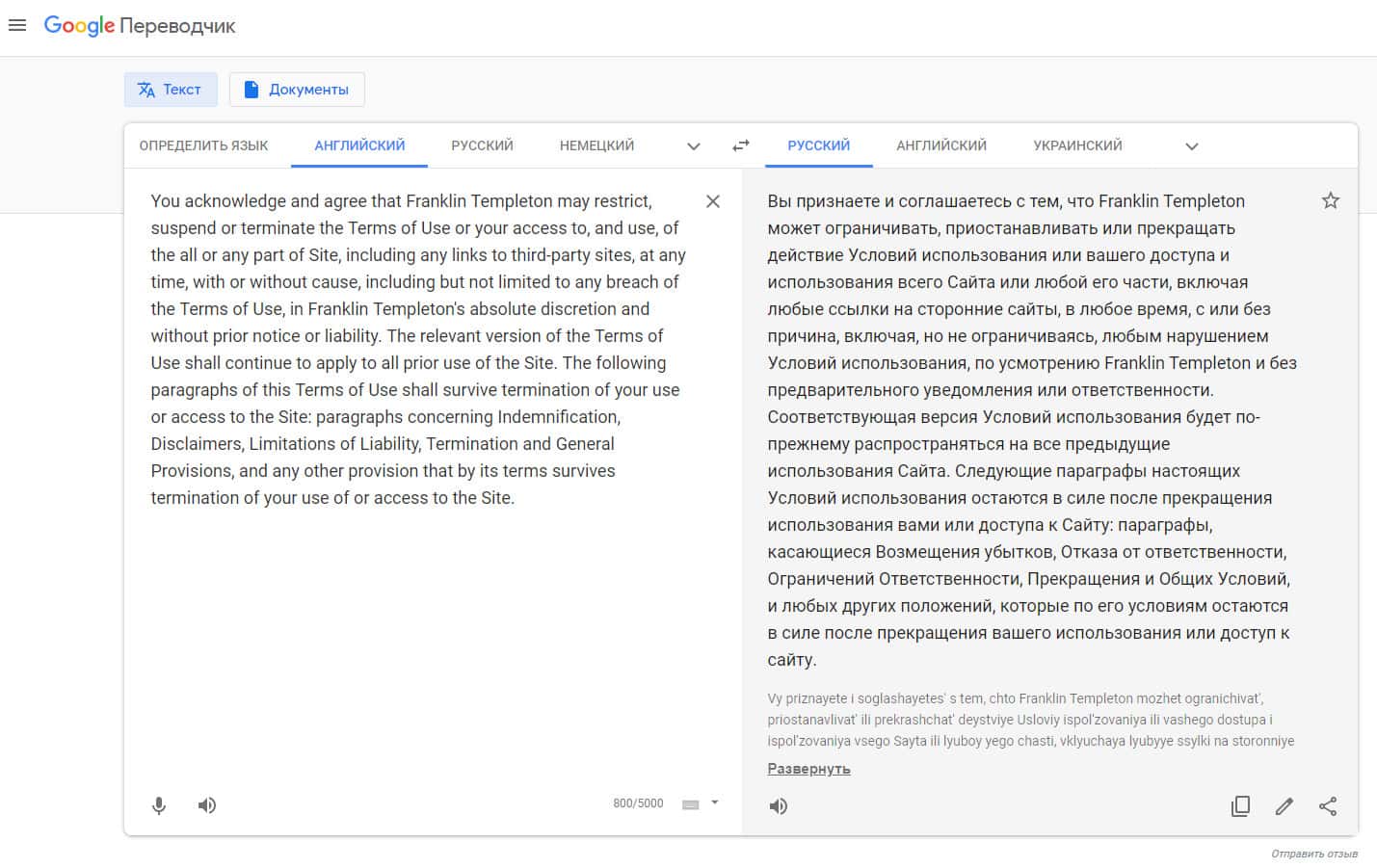 Условия клиентского соглашения мошенников Франклин Темплетон