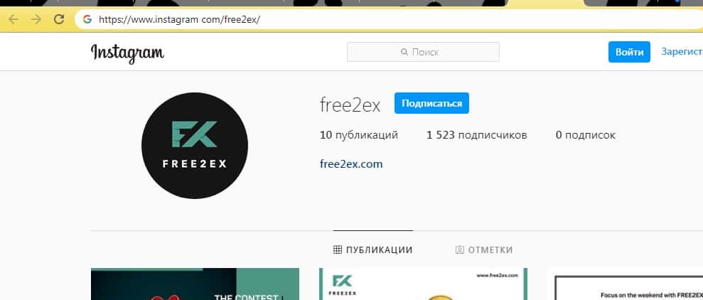 Для размещения различных заманчивых постов с лапшой на уши наивной клиентуре аферисты Free2Ex обзавелись страницей в социальной сети Инстаграм, где у мошенников Фри 2 Экс имеется около 6 тыс. подписчиков. На изображении, расположенном ниже, вы можете увидеть страницу аферистов Фри 2 Экс на площадке Инстаграм.