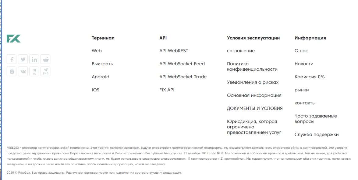 Внизу подвального сайта представлены те социальные сети, в которых кухня Фри 2 Экс проводить какую-либо активность и заманивает людей таким образом в свою контору. Будьте осторожны и не переходите по таким ссылкам, потому что любой брокер в любом случае по итогу приведет к полному разорению.