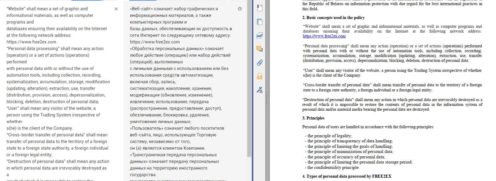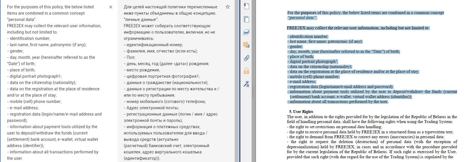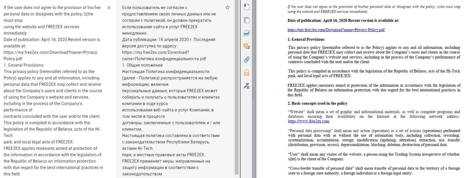 После в политике конфиденциальности у аферистов Free2Ex следует условие о том, что мошенники Фри 2 Экс по своему личному усмотрению могут передавать личные и персональные данные наивной клиентуры третьим лицам. На изображении, расположенном ниже, вы можете увидеть данные раздел политики конфиденциальности жулья.
