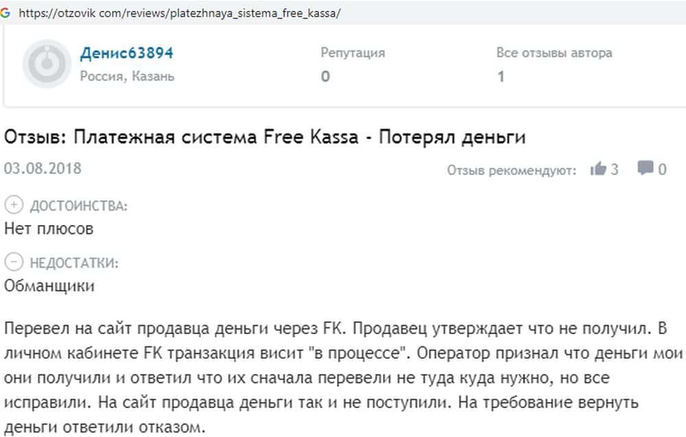 На сайте otzovik com собрались пользователи, обманутые шарлатанами Фри Касса, чтобы выразить свое недовольство и предупредить других людей. Лохотронщики просто "теряют" переводы: со счета отправителя они списываются, а до получателя не доходят. Обращения в службу технической поддержки и скрины с доказательствами ни к чему не приводят.