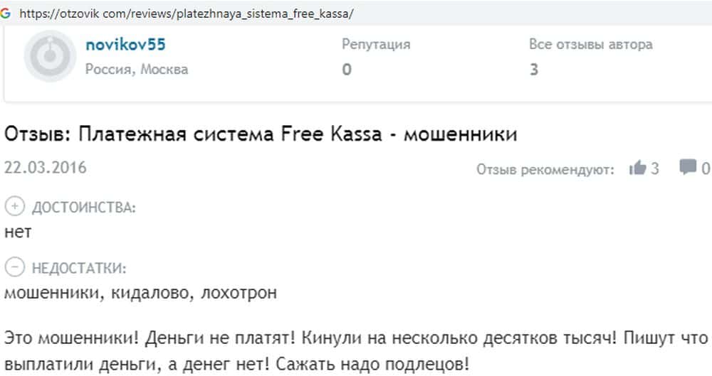 На ресурсе otzovik com много содержательных отзывов о воровстве шарлатанов Фри Касса со скриншотами счетов и переписок со службой техподдержки. Но есть и отзывы, состоящие в основном из нелестных эпитетов - ворюги настолько допекли людей, что у них просто не остается других слов, чтобы выразить свое недовольство скам-сервисом.