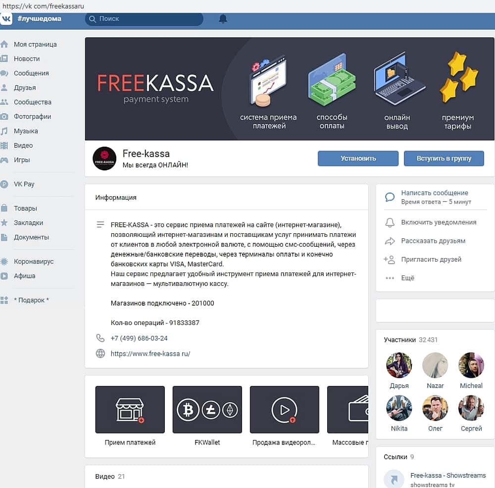 Аферюги Фри Касса глубоко запустили свои загребущие лапы в социальные сети. Для жителей стран СНГ, которые активно используют социальную сеть вк ком, шарлатаны Фри Касса создали паблик, который уже собрал довольно много подписчиков. Но вот комментариев почему-то особо нет. Шулера Фри Касса подчищают негативные отзывы.
