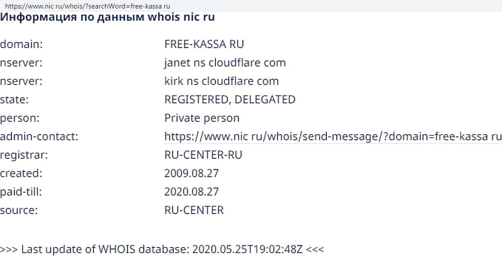 По данным сервиса Whois, который предоставил портал ник ру, удалось выяснить, что владелец домена шараги Free-Kassa решил остаться неизвестным. Единственное, что видно из полученной информации, что хозяином доменного имени является частное лицо, а не организация. Зачем скрывают владельца киберлохотронщики Free-Kassa?