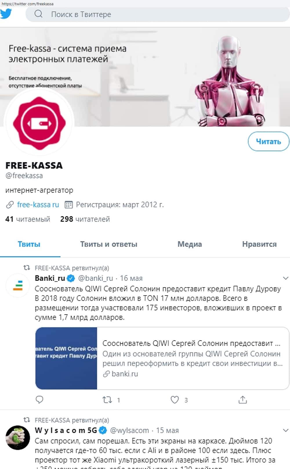 Ну и совсем не зашла пользователям сети Интернет лента ворюг Фри Касса на сервисе твиттер ком. Контент здесь отличается от содержания пабликов в других социальных сетях. Он состоит большей частью из репостов-ретвиттов с левых источников и не содержит большой смысловой нагрузки. Как и особого смысла.
