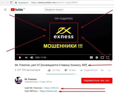 В видео об MFCoin можно найти спонсора под названием Exness. Так вот этот проект также мошеннический, что ставит в один ряд контору Free Land.