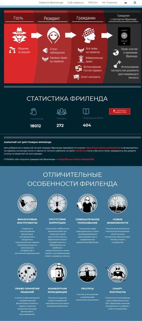 Дальше еще интересней! Интернет-контора Фри Ленд предлагает гражданство и паспорт своим участникам. Если ты внесешь достаточно денег в проект, то сможешь типа быть гражданином и решать кое-какие вопросы. Конечно же это все сделано для завлекалова народа и получения больших богатств. Как мы видим в Фри Ленд уже 18 000 участников из которых 272 граждан и 404 получивших ВНЖ - не яркая статистика для хайпа. А еще дальше начинают говорить о каких-то утопических моментах, где Free Land белая и пушистая.