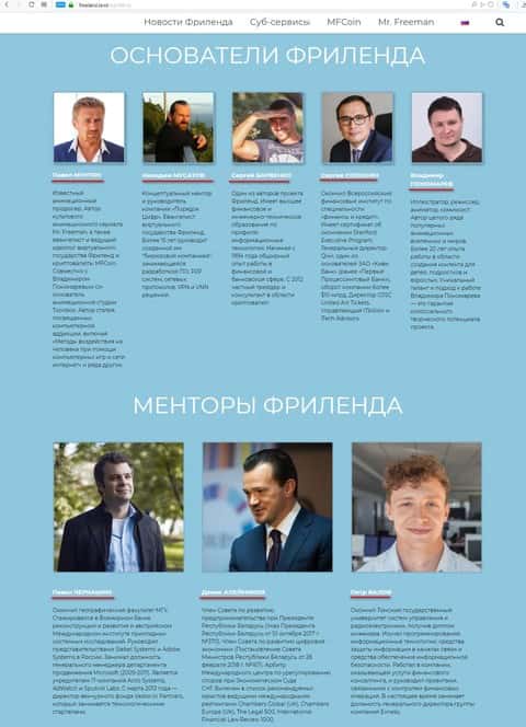 Чтобы рассмотреть все руководство и основателей интернет-хайпа Free Land, то нужно просто разбить ее на несколько групп. В основном это люди которые замешаны в проекте Mr. Freeman и прочие бизнесмены. На что они надеются непонятно, так как данная шарага много денег не принесет, если конечно их идея-утопия и вправду на глобальном уровне заместит реальную существующую систему. А теперь по-порядку: