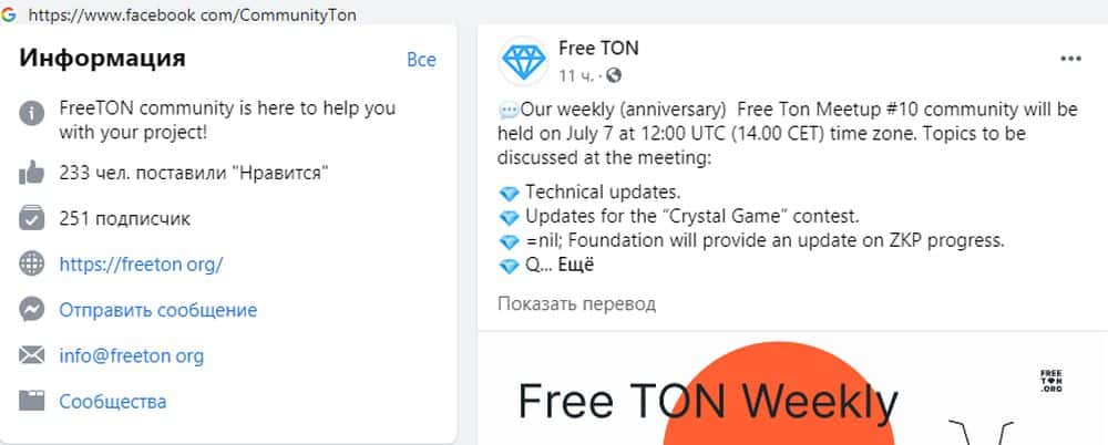 Связь с жуликами Фри Тон исключительно односторонняя. Они указывают адрес почты info@freeton org, который можно найти только в их группе на Фейсбук, других контактов нет.