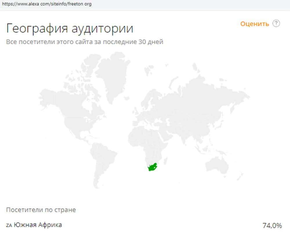 Согласно информации веб-сервиса alexa com, основной трафик (около 74%) на сайт лохотрона Фри Тон поступает из Южной Африки. Данных о других источниках нет.