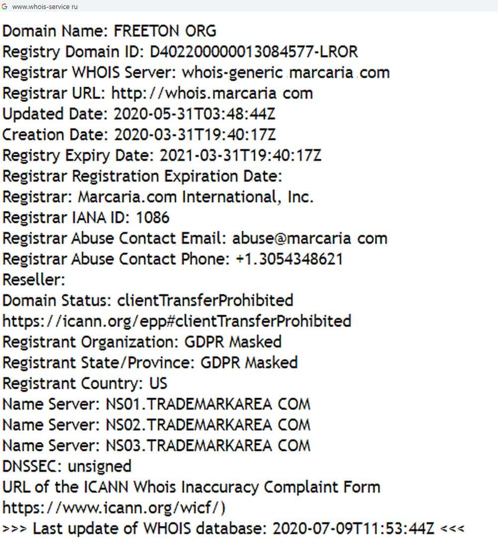 Согласно информации сайта whois-service ru, данные о владельцах шараги Фри Тон скрыты платными сервисами. Это лишний раз доказывает, что мы имеем дело с лохотроном.