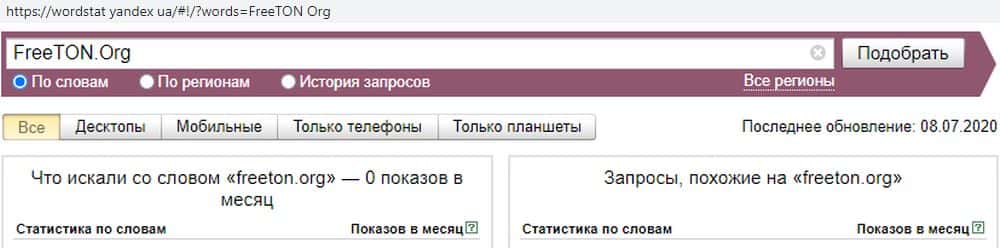 По запросу "freeton.org" количество показов тоже нулевое. Это еще раз подтверждает, что Фри Тон - обычный лохотрон-однодневка, созданный, чтобы нажиться на случайных жертвах.