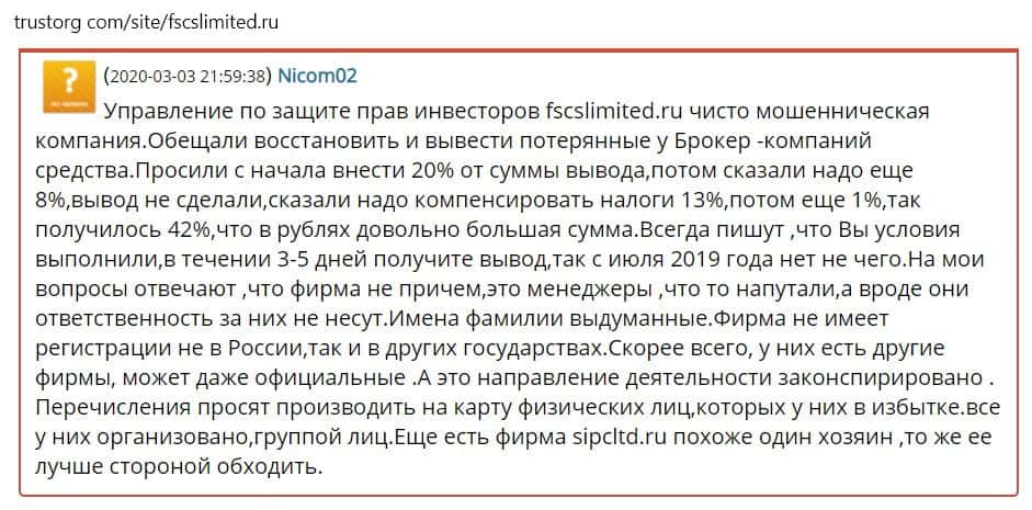 - Отзывы о лохотроне ФСЦС Лимитед, найденные в сети