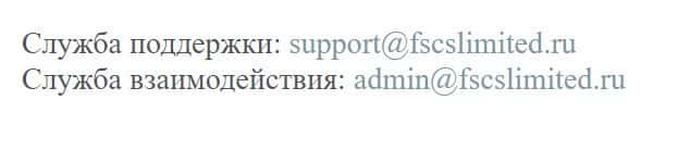 Для связи пользователей с конторой ФСЦС Лимитед имеются только адреса электронной почты. Телефонных номеров на сайте нет. Жулики пользуются холодным обзвоном.