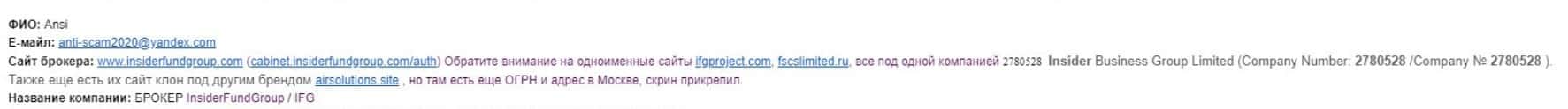 Прослеживается связь конторы FSCSLimited Ru с лохотронами: Аир Солюшн, Инсайдер Фонд Групп, IFGProject. Это брокеры-мошенники, кидающие людей на деньги.