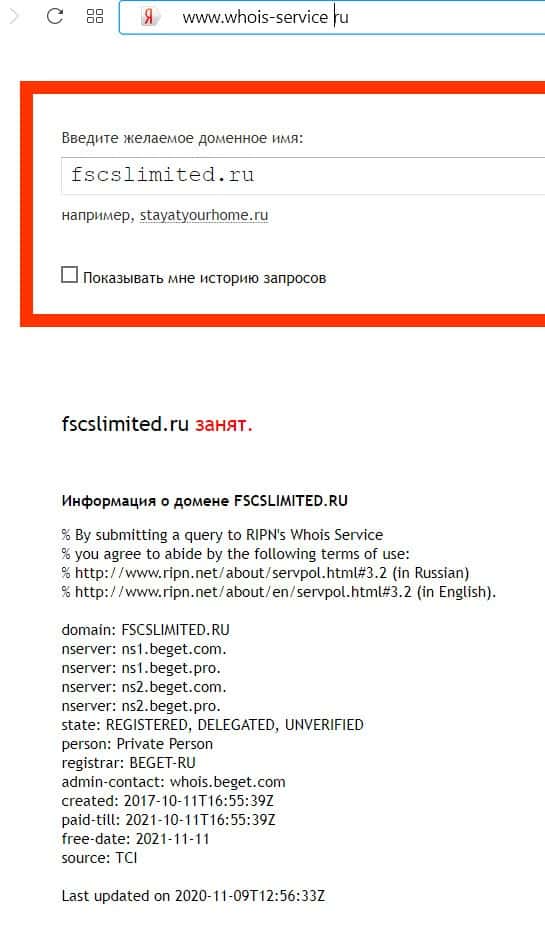 - Кому принадлежит доменное имя сайта fscslimited ru?