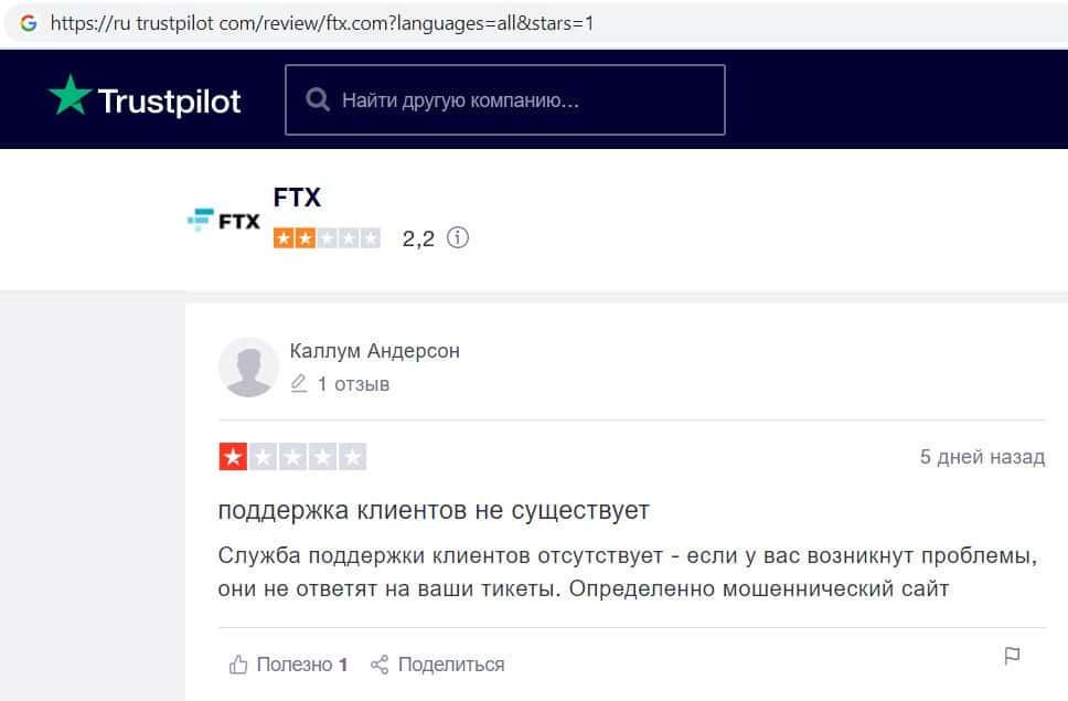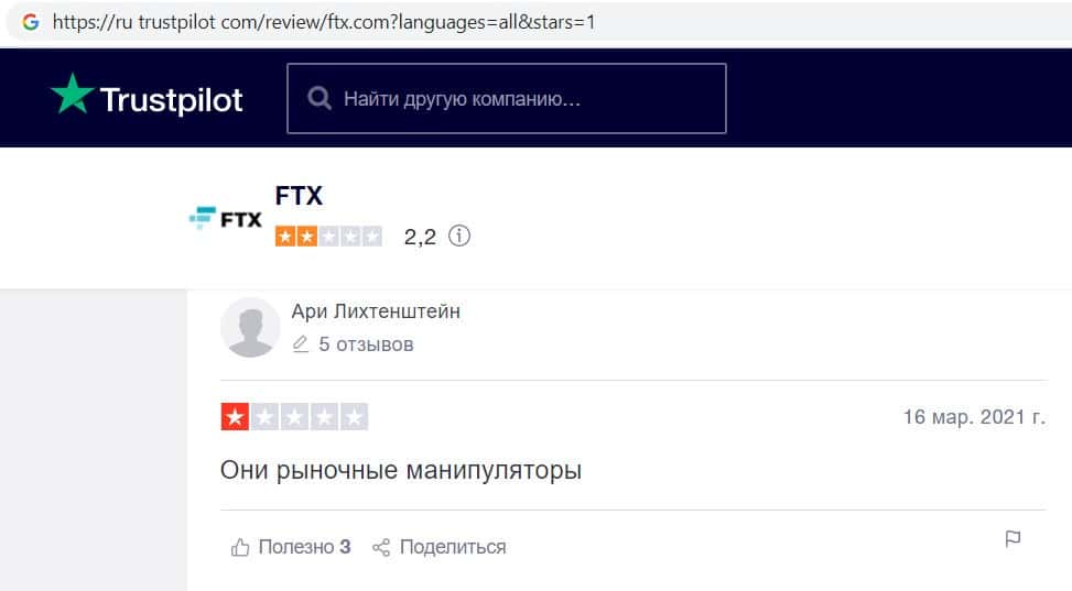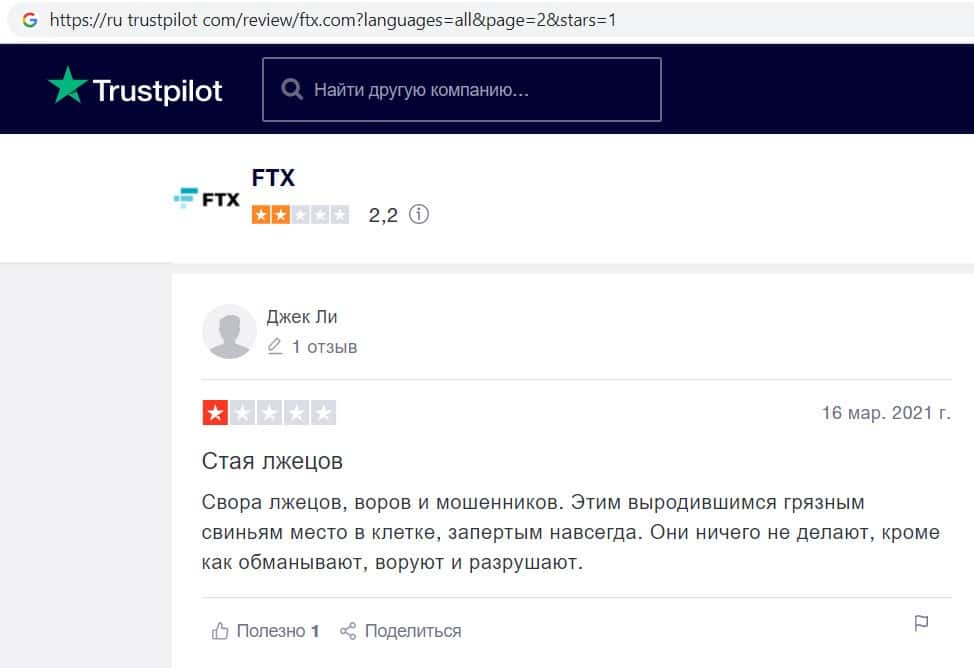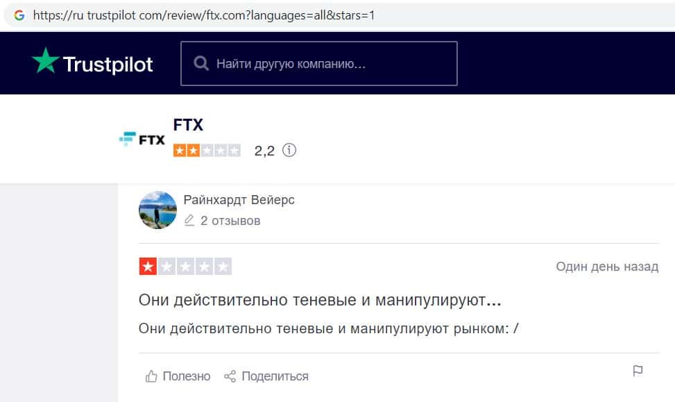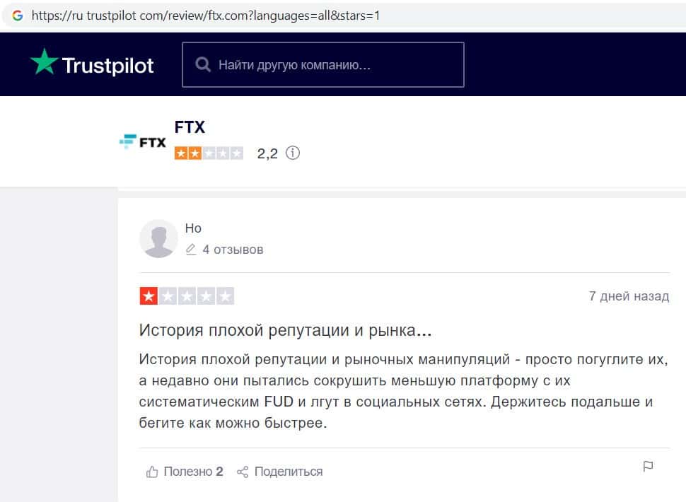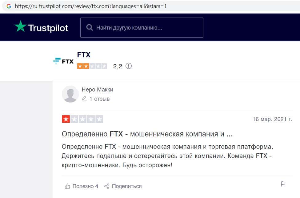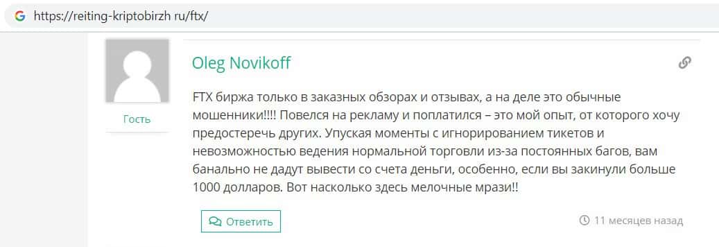 Автор этого отзыва написал, что компании FTX нельзя доверять так как они мошенники и дезинформируют клиентов, по этому не стоит доверять ей свои денежные средства.