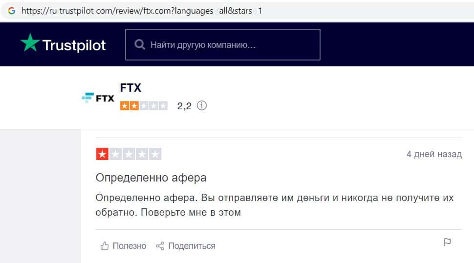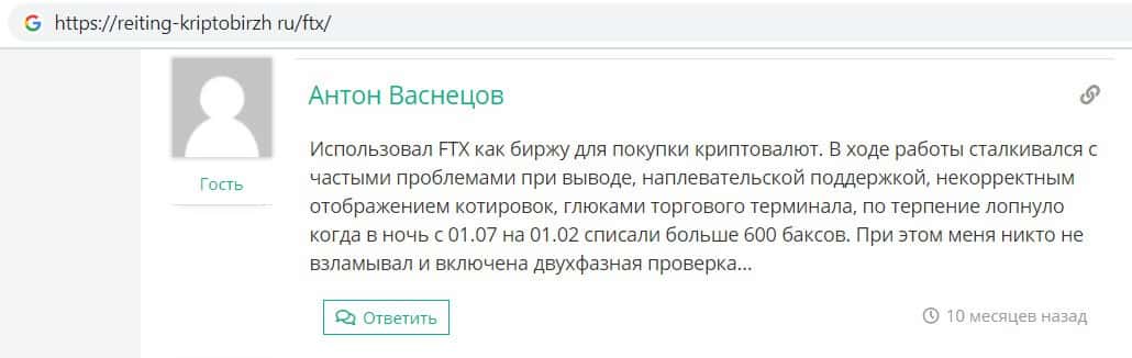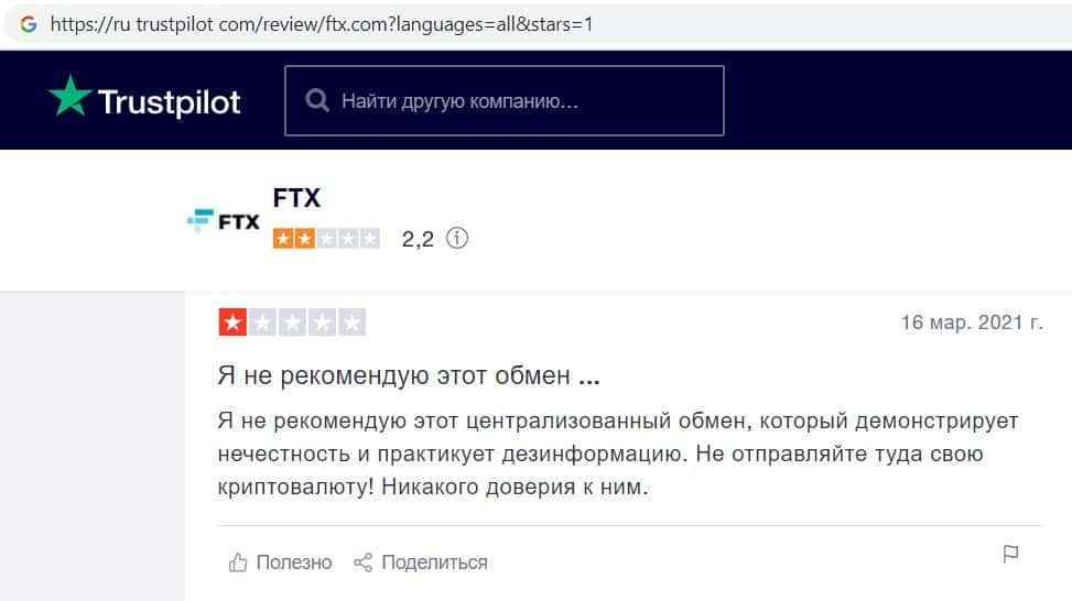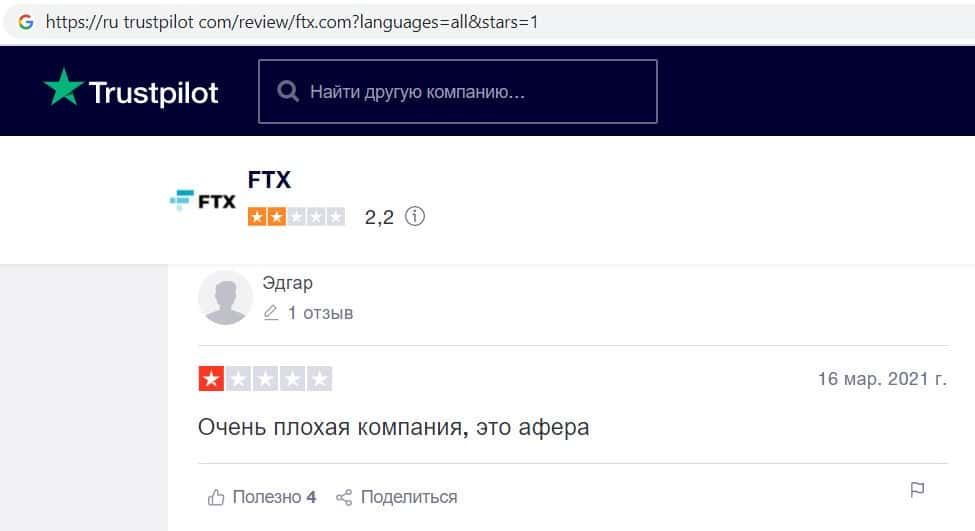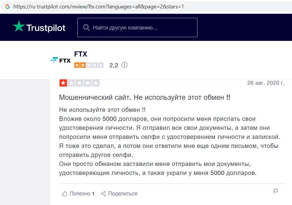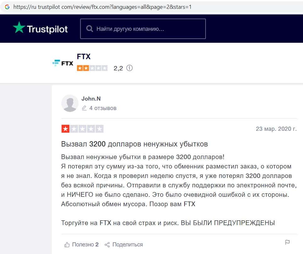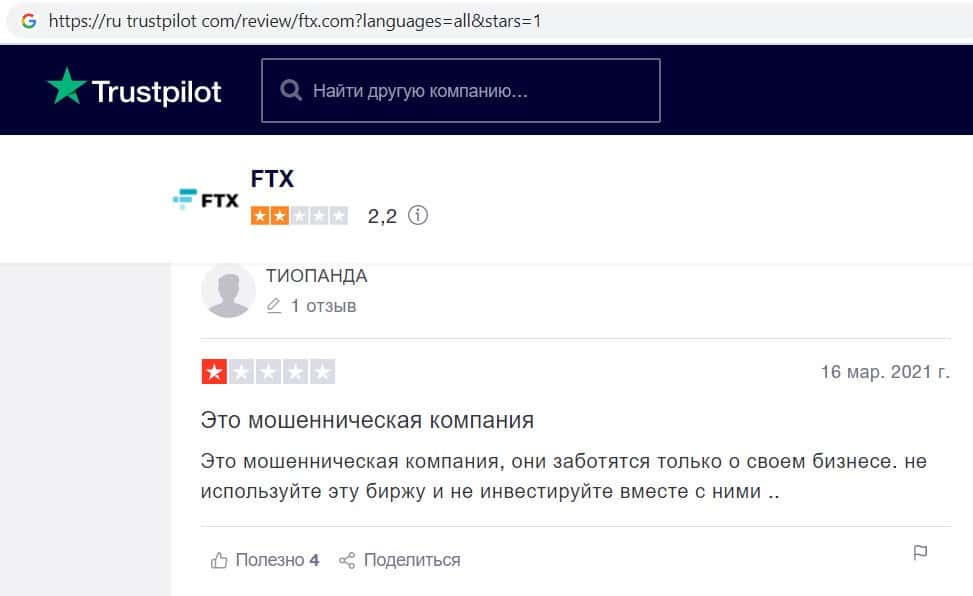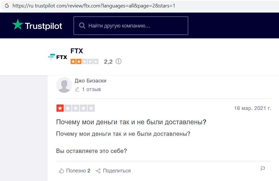 Автор этого отзыва написал, что компании FTX нельзя доверять так как они мошенники и дезинформируют клиентов, по этому не стоит доверять ей свои денежные средства.