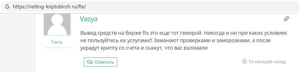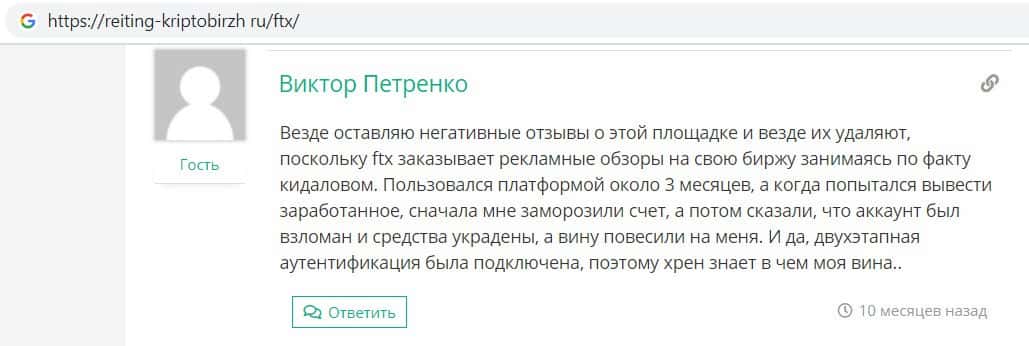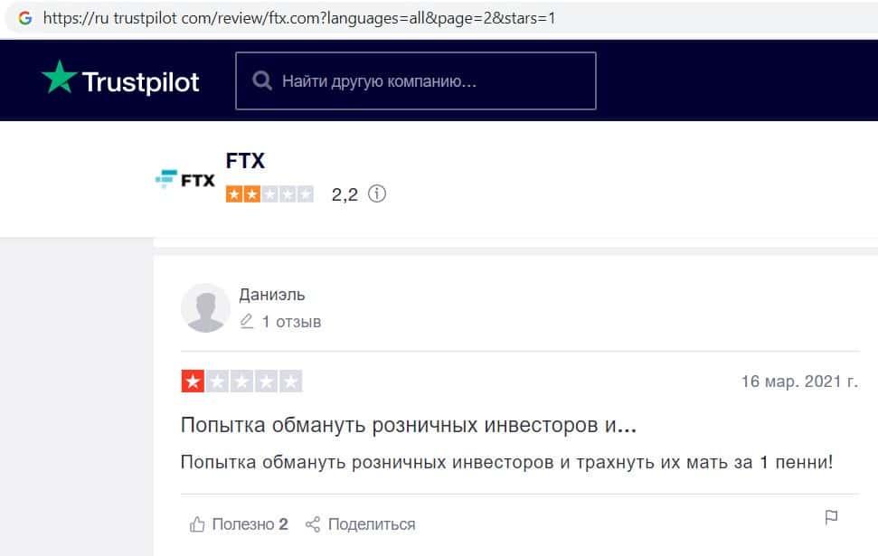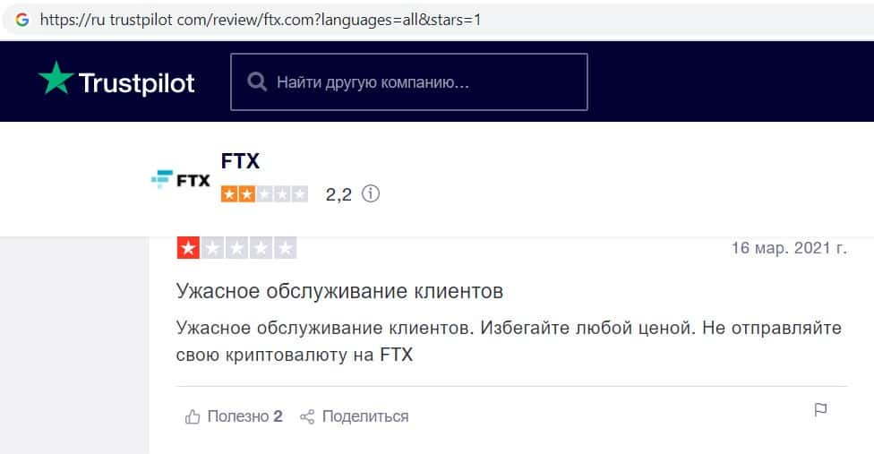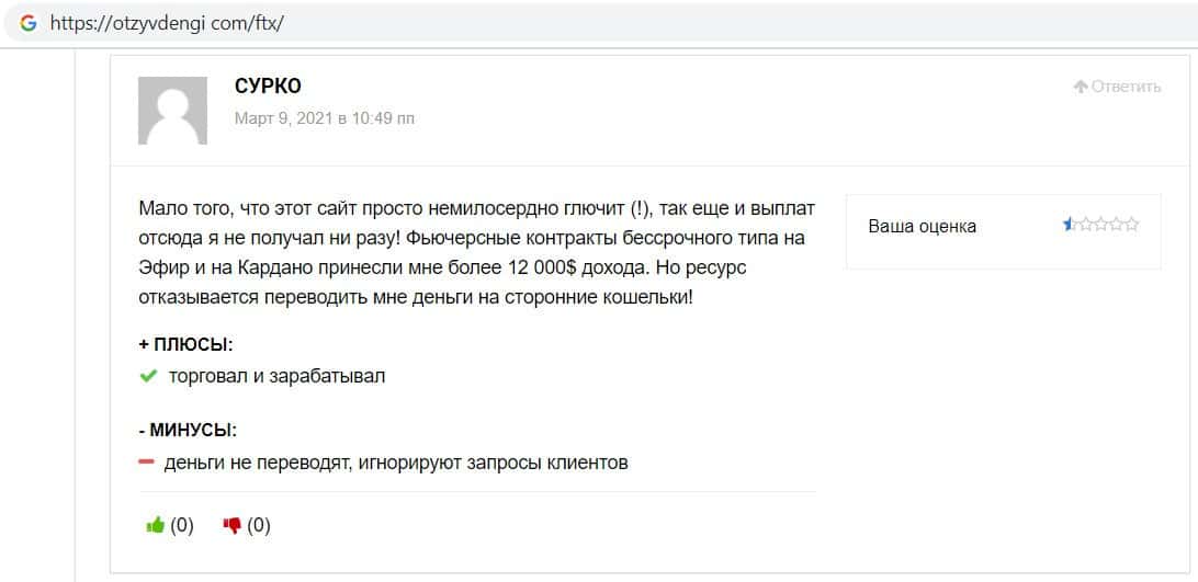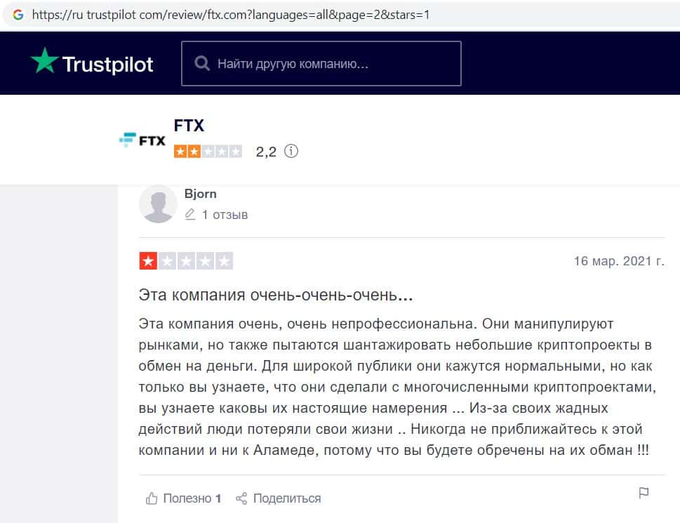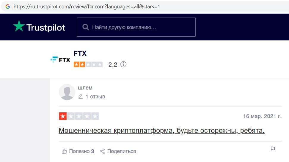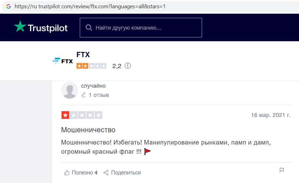 Автор этого отзыва написал, что компании FTX нельзя доверять так как они мошенники и дезинформируют клиентов, по этому не стоит доверять ей свои денежные средства.