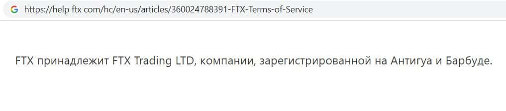 Компания финансовых разводил FTX указала на своём главном сайте информацию о своём юридическом лице, которым в свою очередь является контора FTX Trading LTD.