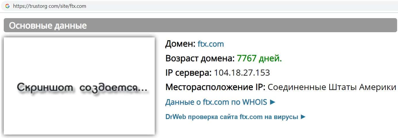 Через сайт "Доверие в Сети" мы узнали, что главному сайту кидал ФТХ более 21 года, и скорее всего мошенники просто купили данный домен, чтобы обмануть клиентов.