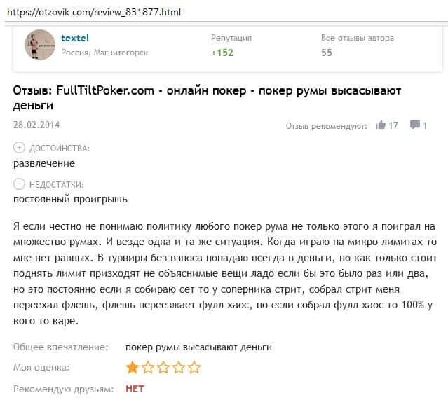 Обзоры о жульническом проекте Фулл Тилт Покер