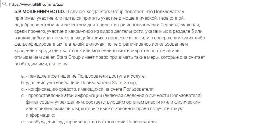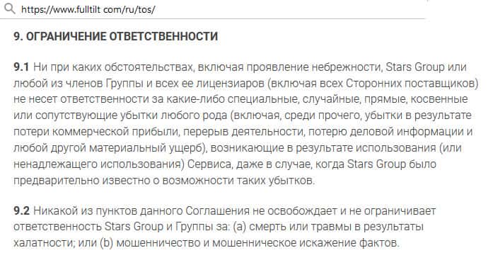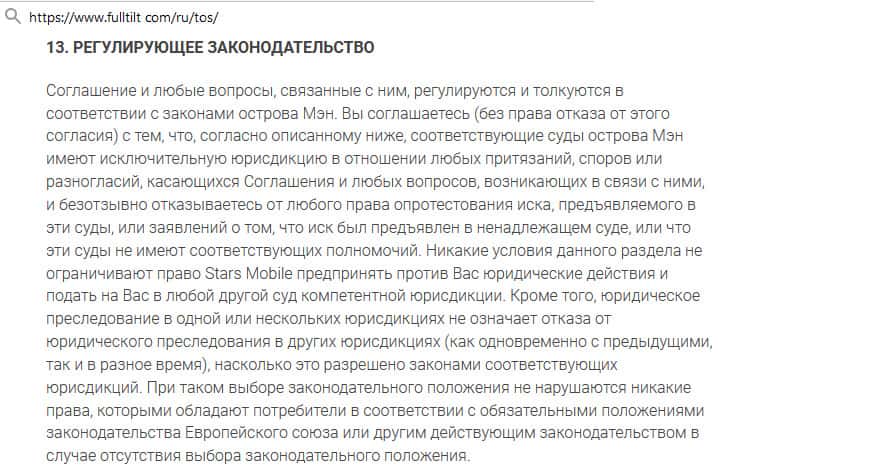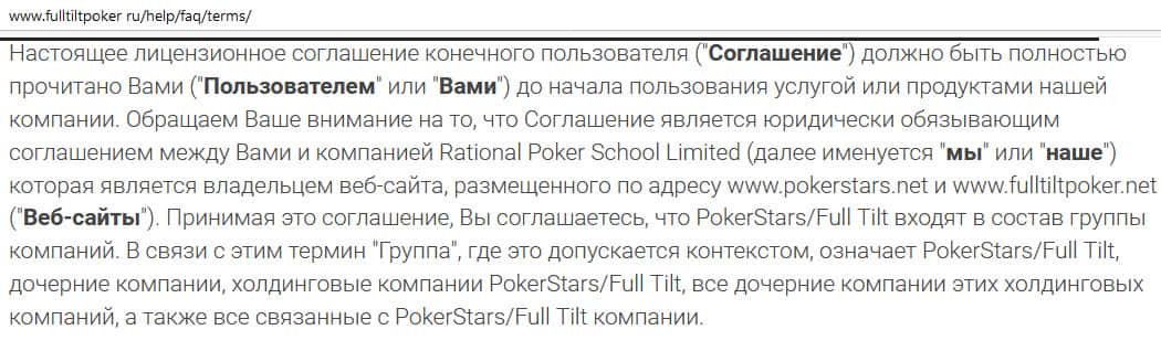 Сомнительное клиентское соглашение организации FullTiltPoker Ru
