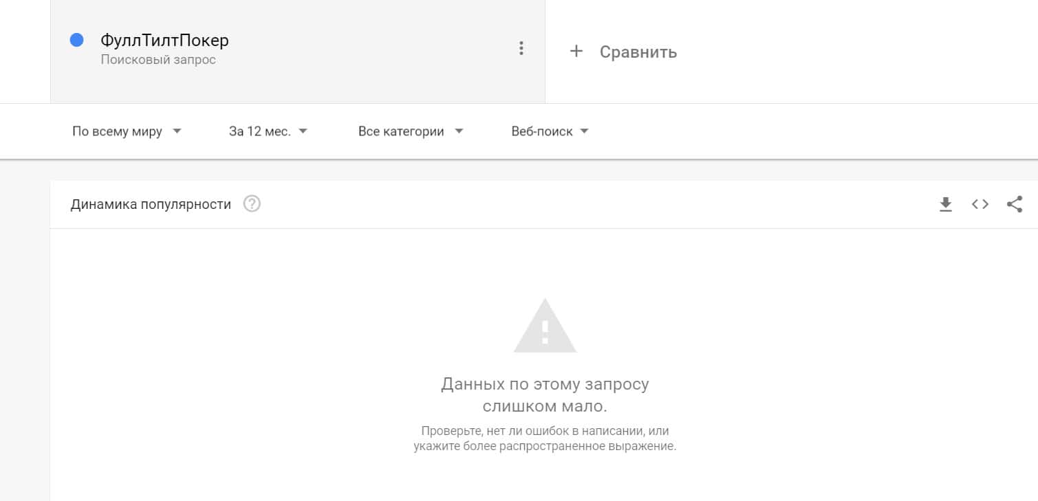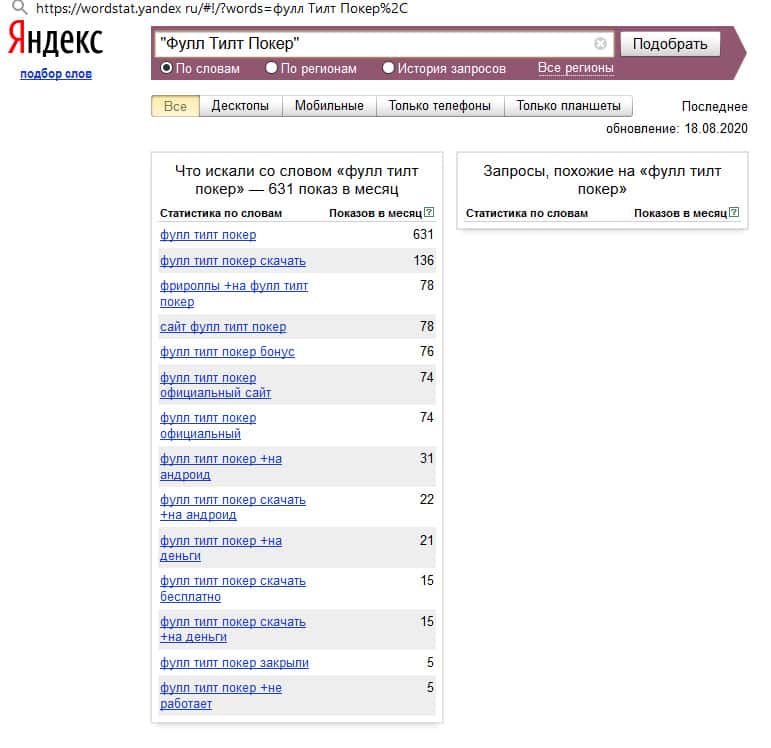 Написание названия "Full Tilt Poker" раздельно на английском языке покажет, что этот домен регулярно ищут в среднем 50 человек за месяц.