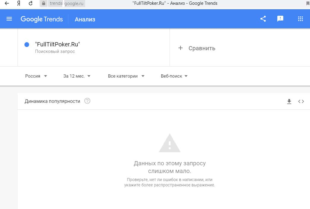 - Количество запросов по компании "FullTiltPoker Ru" в поисковике Гугл